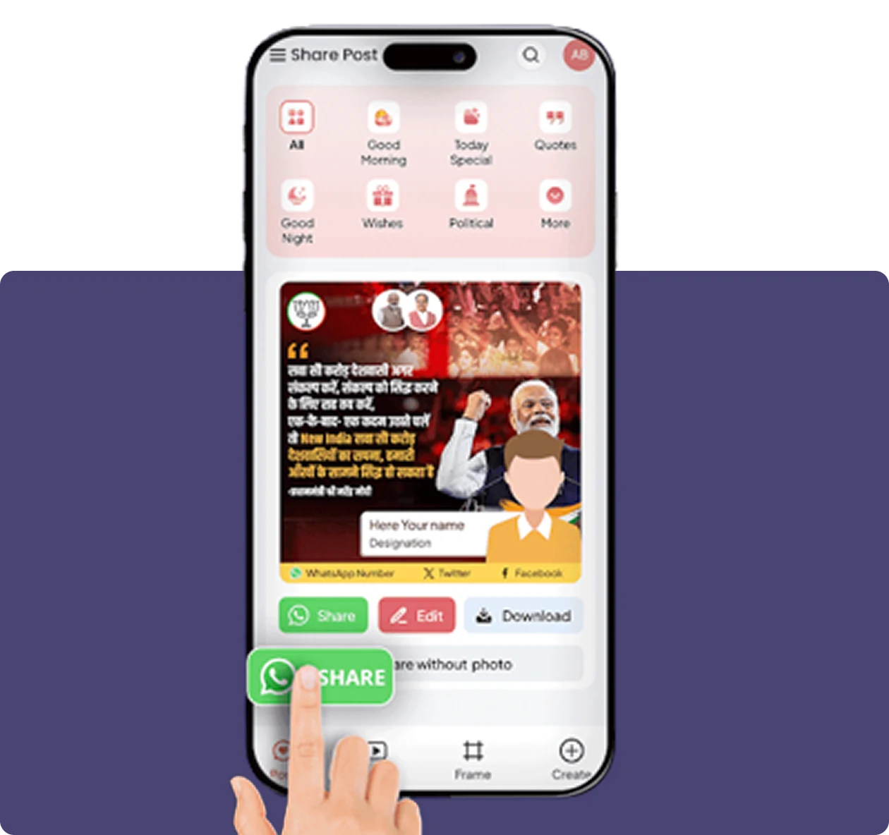 A lightweight creation tool that enables users to generate share-ready image posts and statuses quickly—built for everyday use and high-frequency distribution across WhatsApp and social platforms.