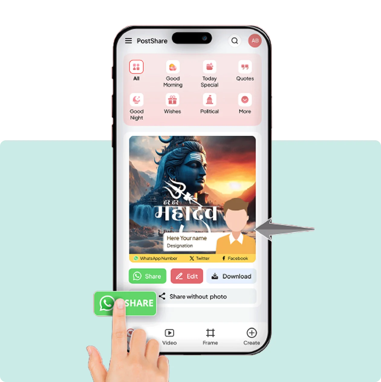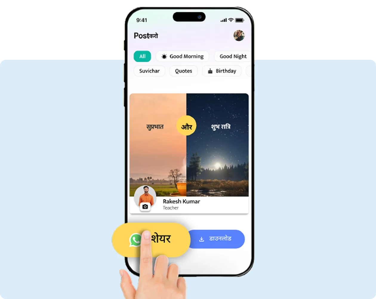 A lightweight creation tool that enables users to generate share-ready image posts and statuses quickly—built for everyday use and high-frequency distribution across WhatsApp and social platforms.