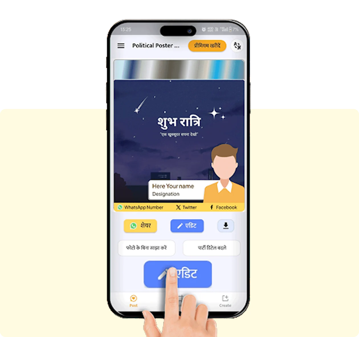A lightweight, powerful poster-creation app designed for everyday social sharing, political messaging, and local communication. Built for speed and reach, Post Karo enables users to create high-impact visuals without design skills.