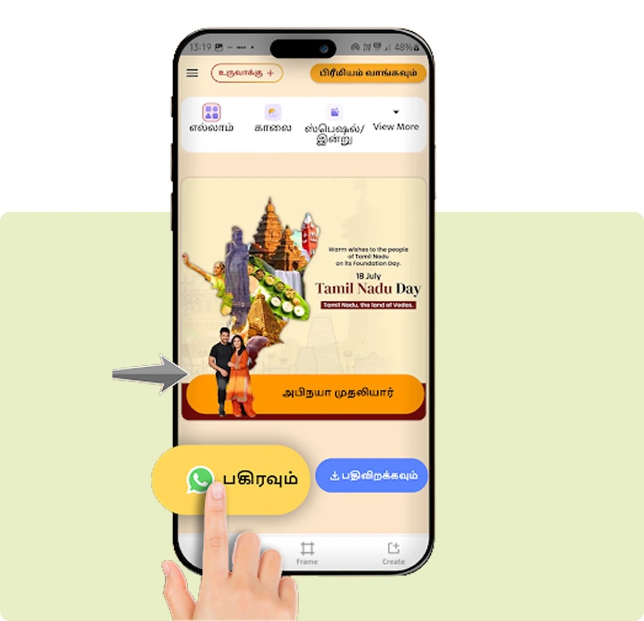 A Tamil-first poster app enabling regional expression, cultural messaging, and local communication through visually engaging designs.